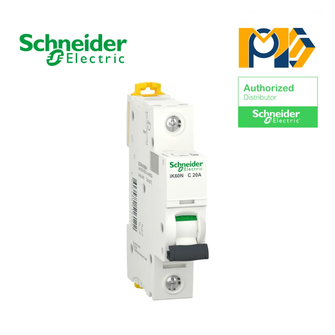 MCB iK60N A9K27120 1P 20A C Curve là thiết bị đóng cắt và bảo vệ mạch điện thuộc dòng Acti9 iK60N của Schneider Electric, được thiết kế để bảo vệ hệ thống điện 1 pha trước các sự cố quá tải và ngắn mạch trong quá trình vận hành. Với cấu hình 1 cực (1P) cùng dòng định mức 20A, sản phẩm phù hợp cho các mạch điện dân dụng có tải trung bình đến khá như ổ cắm riêng, bình nóng lạnh, điều hòa công suất nhỏ, bếp điện hoặc các thiết bị điện gia dụng tiêu thụ điện lớn hơn thông thường.