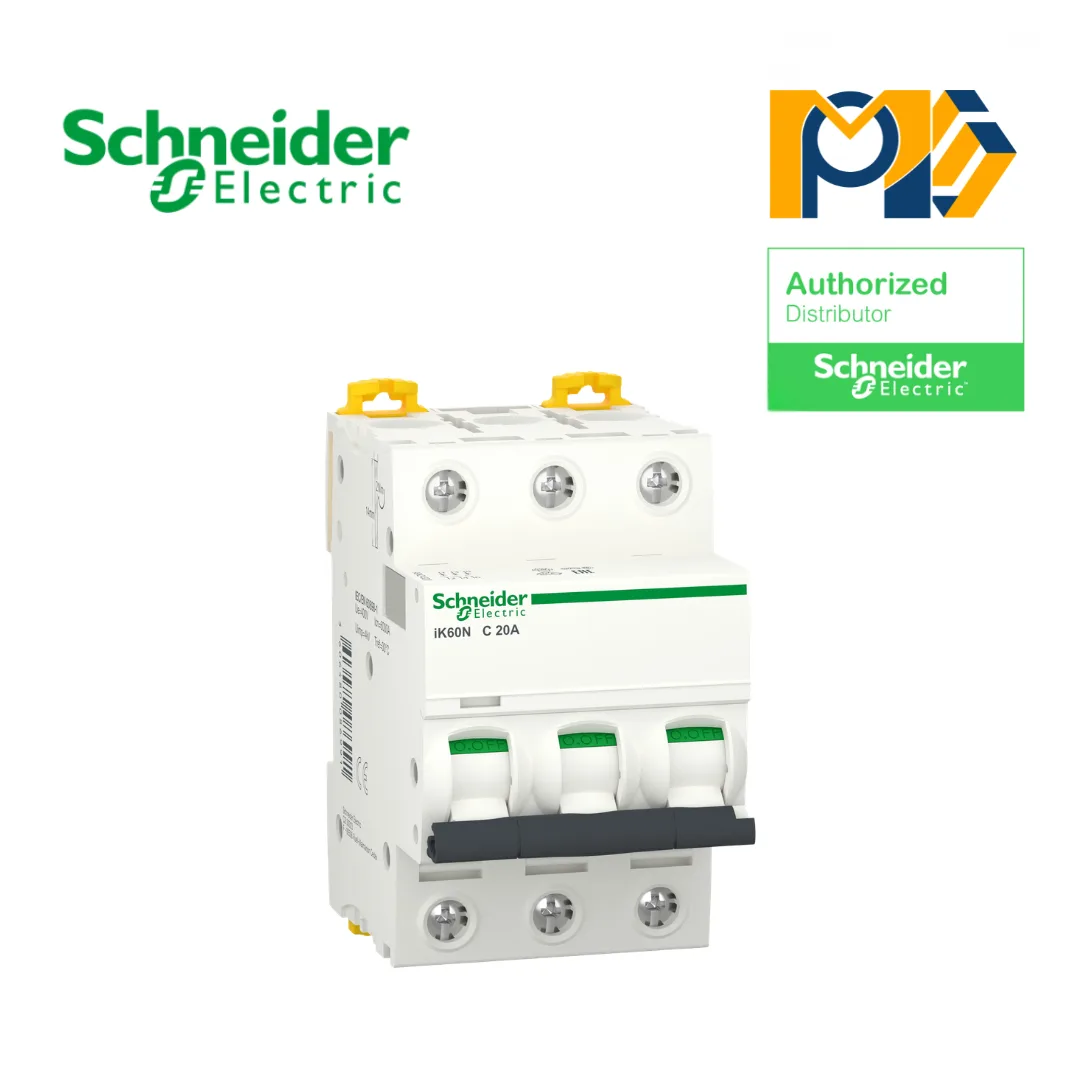 MCB iK60N A9K24320 3P 20A C Curve là thiết bị đóng cắt và bảo vệ mạch điện 3 pha thuộc dòng Acti9 iK60N của Schneider Electric, được thiết kế nhằm bảo vệ hệ thống điện trước các sự cố quá tải và ngắn mạch. Với thiết kế 3 cực (3P), thiết bị cho phép ngắt đồng thời cả ba pha điện, đảm bảo an toàn cao cho hệ thống điện trong quá trình vận hành.